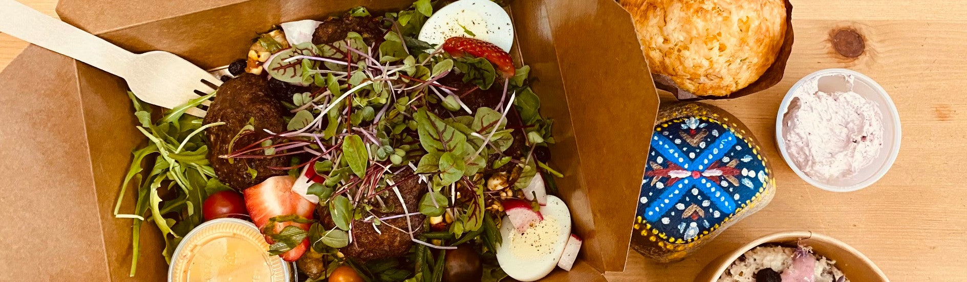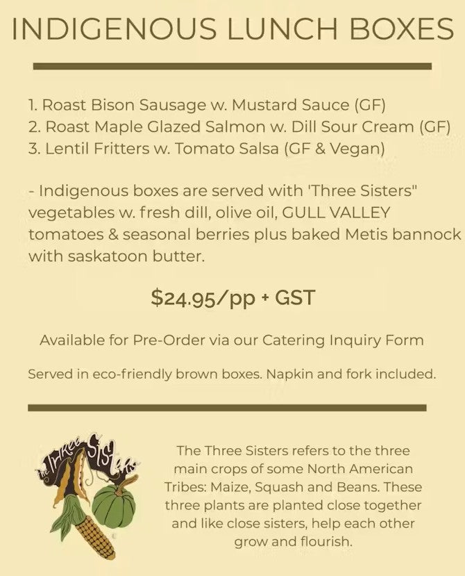 Available for your next conference or traditional communal ceremony, we prepare individually packaged or buffet style Indigenous themed meals sourcing local ingredients including Alberta bison.